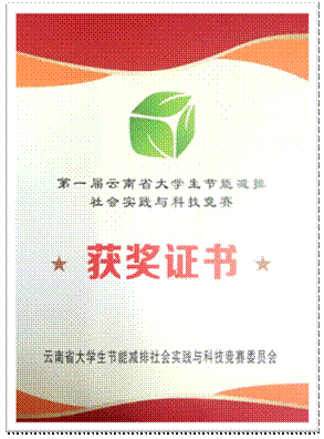 大学生节能减排社会实践与科技竞赛选拔赛一等奖。